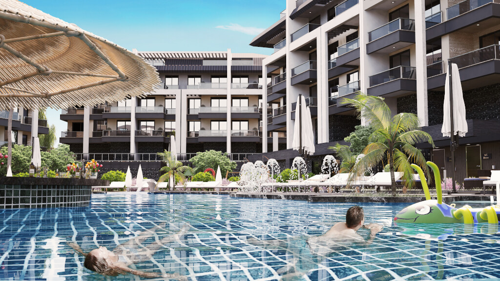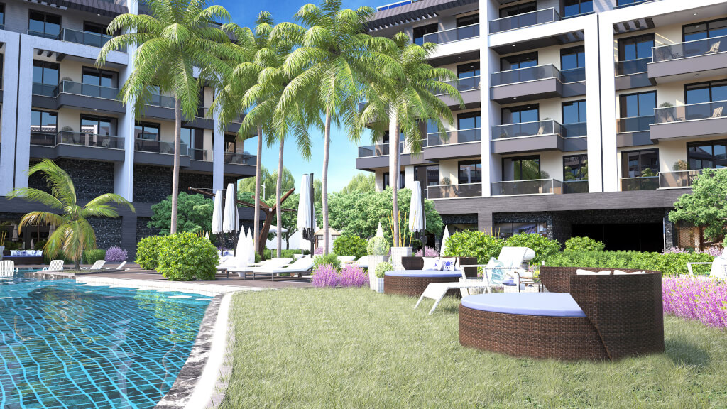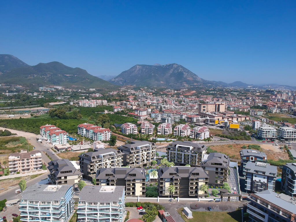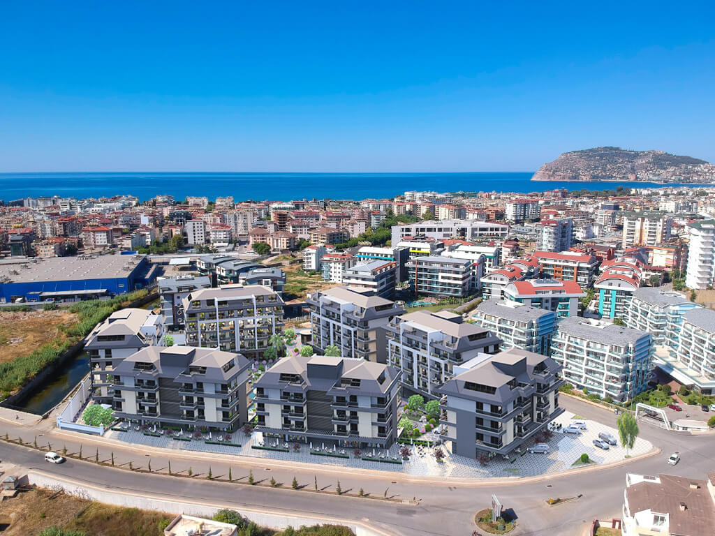 Новый комплекс, который будет построен в районе Оба, на участке площадью 14900 кв.м. и будет состоять из 7 жилых блоков, в общей сложности 178 квартиры. Расстояние до моря - 800 м.