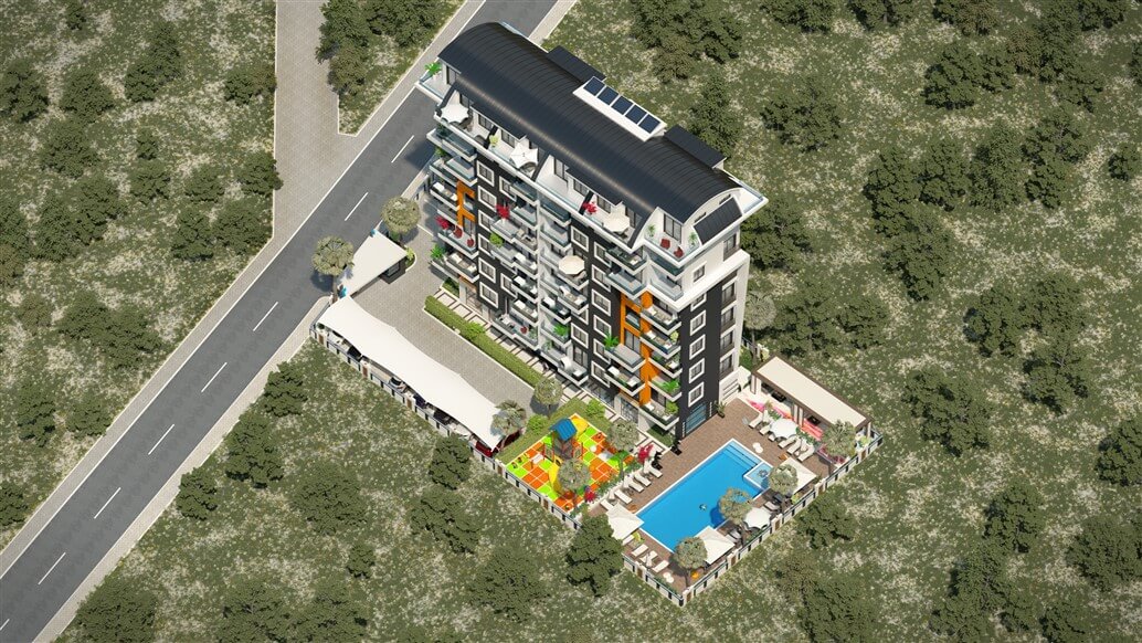 Проект нового жилого комплекса в Алании. 900 метров от моря, остановка общественного транспорта, супермаркеты, рестораны, аптеки и др. рядом с проектом, 25 км от центра Алании.