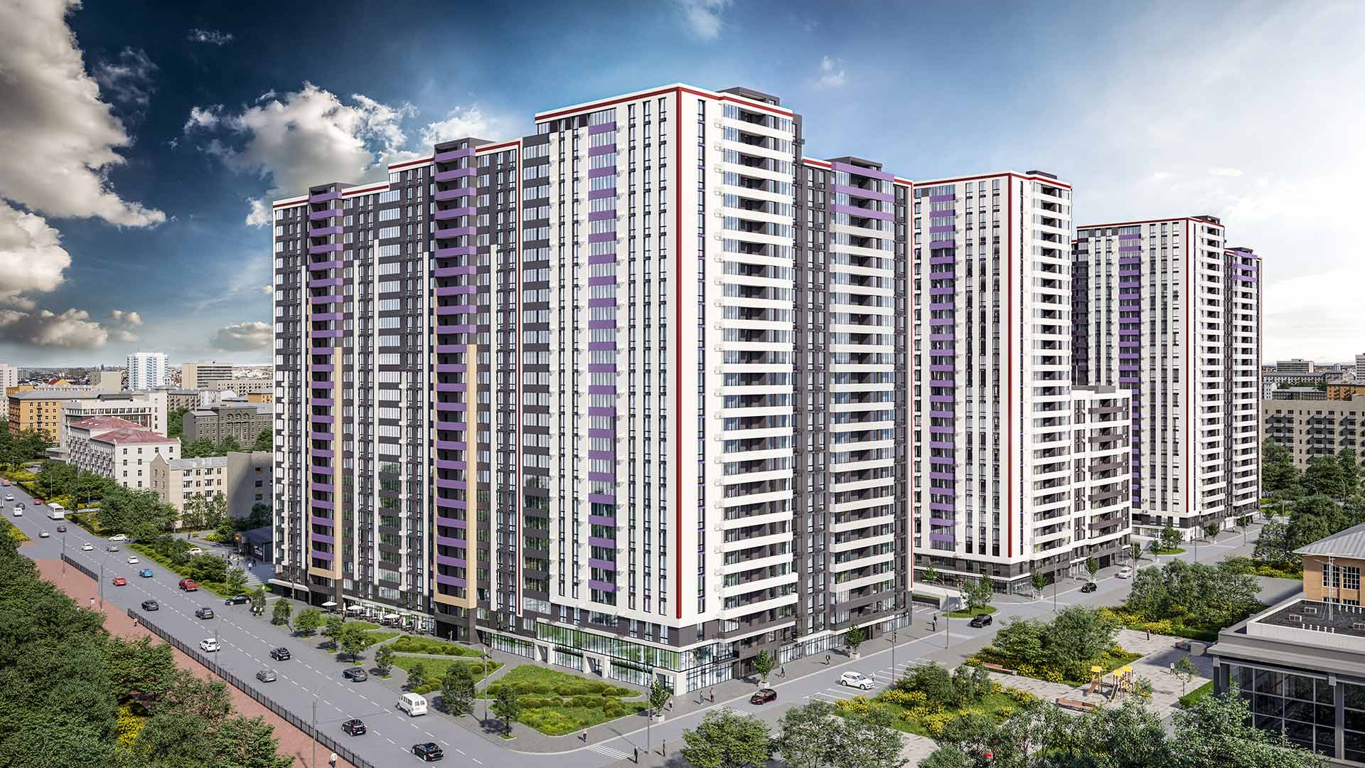 В комплексе планируются несколько спортивных зон, детские площадки, озеленение, подземный паркинг, оснащённый зарядными устройствами для электромобилей. Для дополнительной безопасности и комфорта будет организована охрана территории и круглосуточное видеонаблюдение.