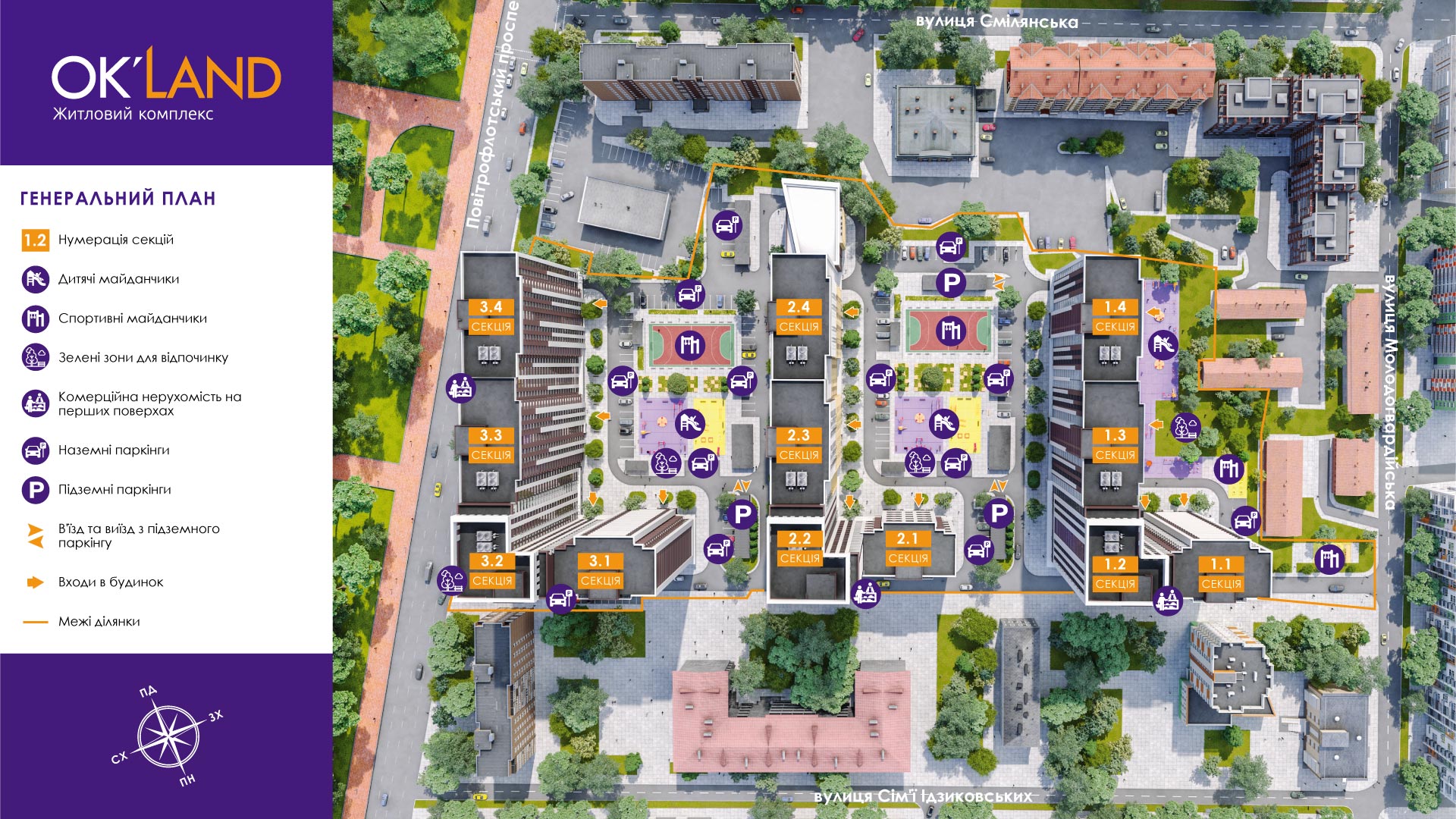 ЖК Ok`Land – новый современный комплекс комфорт-класса в Соломенском районе Киева. Возводится на Воздухофлотском проспекте, в 5 минутах ходьбы от Севастопольской площади. Проект масштабный, состоит из трёх 4-секционных домов, в нем насчитывается 1836 квартир.