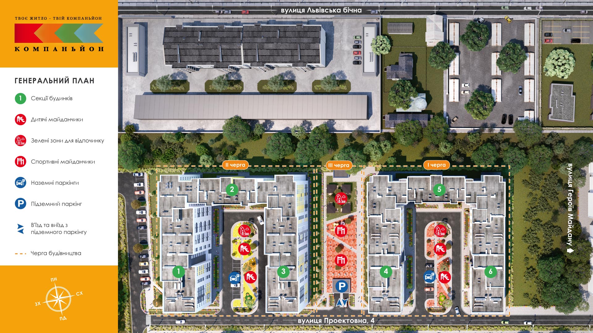 Новый ЖК «Компаньон» нашел свое место в одном из живописных уголков Львова. В тихой зеленой зоне выросли уютные дома жилого комплекса, квартира в котором станет основой вашего благополучия. Этот яркий восьмиэтажный ЖК будет надежным компаньоном для создания вашей счастливой жизни.