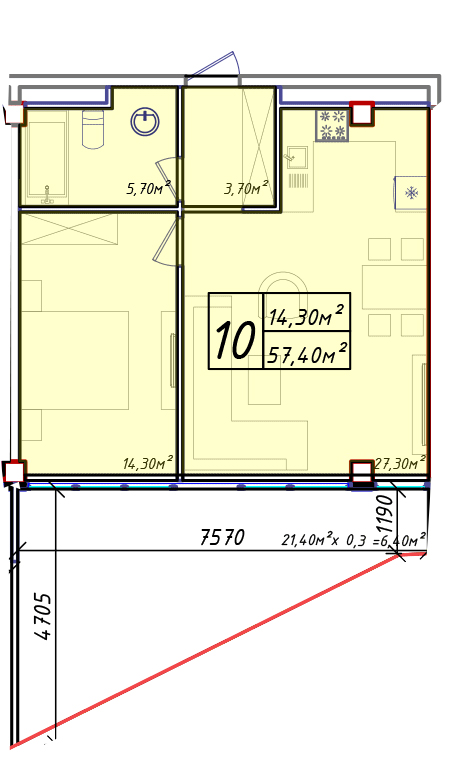 | 59.3 тыс долл | 57.00 м² |