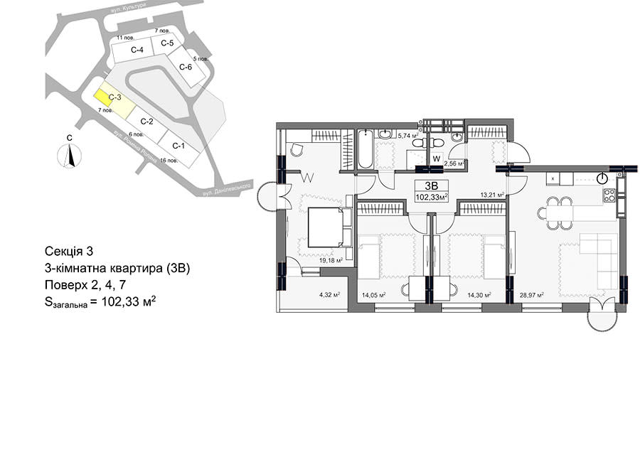 | 4.28 млн грн | 104.32 м² |
